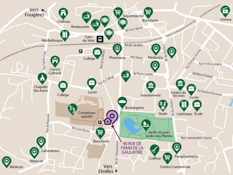 Ville nature, Vitré bénéficie d’un environnement agréable, idéal pour se ressourcer. Si vous aimez les belles promenades, vous aurez le choix, la plus connue est la Promenade du Val. Le Jardin du Parc, aux pieds de la résidence, vous emmène dans une oasis de verdure.