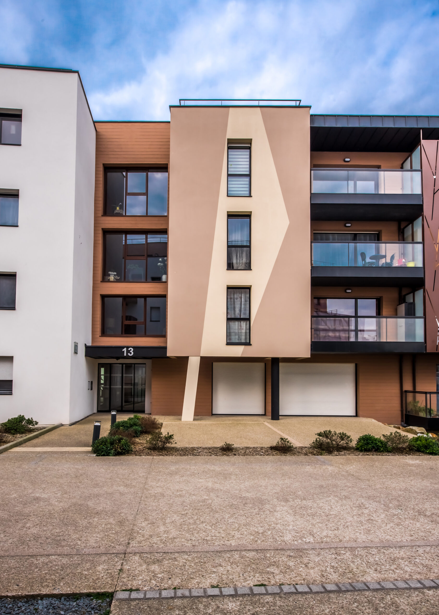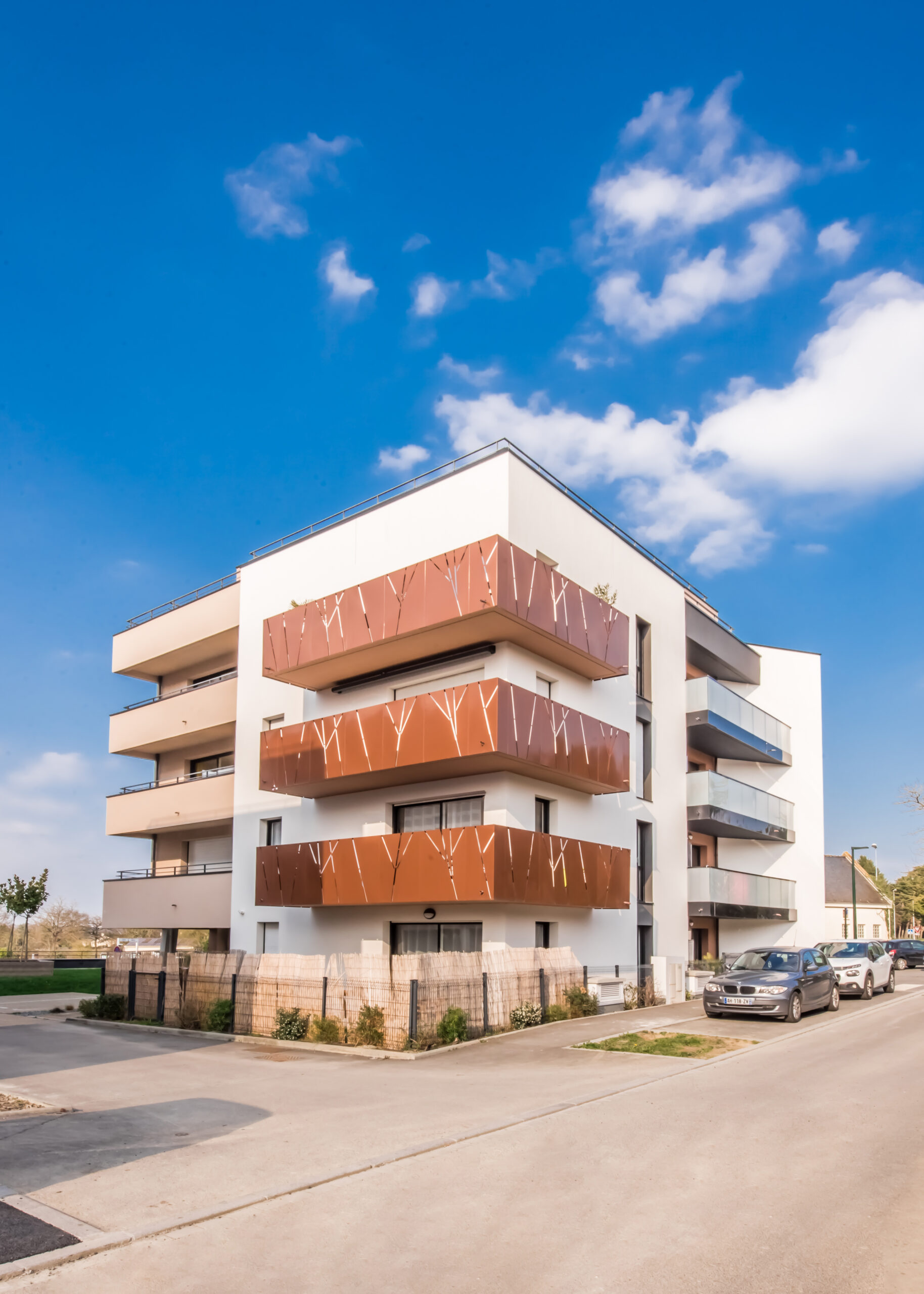 Pour cette raison, les lignes brunes qui esquissent des arbres sur les façades sont le prolongement des grands arbres préservés près de cette nouvelle entrée de ville.”